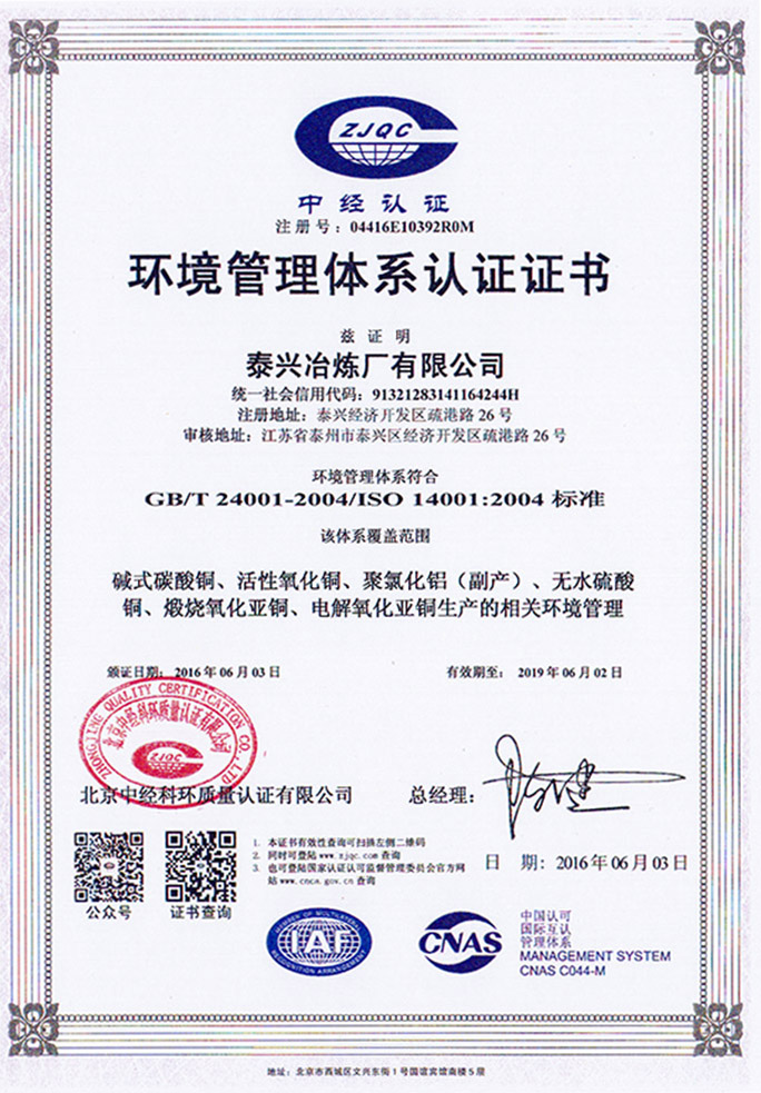 ISO14000 Environmental Management System Certificate